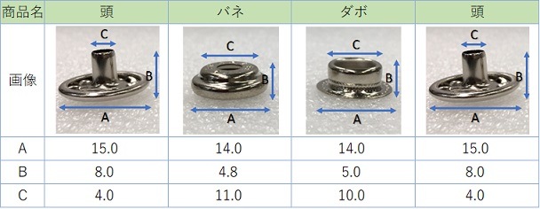 商品名 : 【セット販売】THREE BELLS ホックNo7050両面頭 鉄製 箱単価 1箱/1000個入